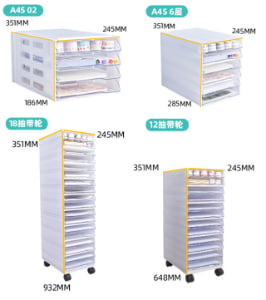 Keep your office or home workspace tidy and efficient with this Desktop Drawer Organizer. Designed for A4 documents and small office supplies, it features multiple clear, stackable drawers that allow easy access and quick identification of contents. Its compact, vertical design helps maximize desk space while offering large-capacity storage. Ideal for organizing papers, folders, stationery, and more in offices, classrooms, or home study rooms.